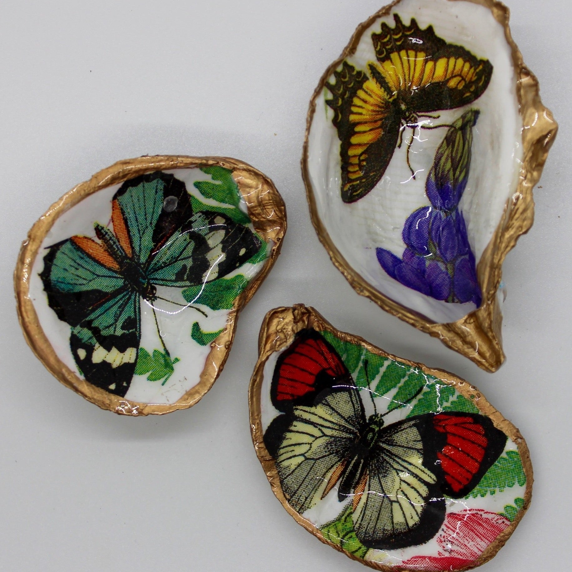 Beautiful Primary color Butterflies with a hint of greenery or botanical. Let us choose among these one of a kind treasures. Precious oyster shells that have been re-purposed into beautiful handmade creations. Each shell is a true work...Read more
