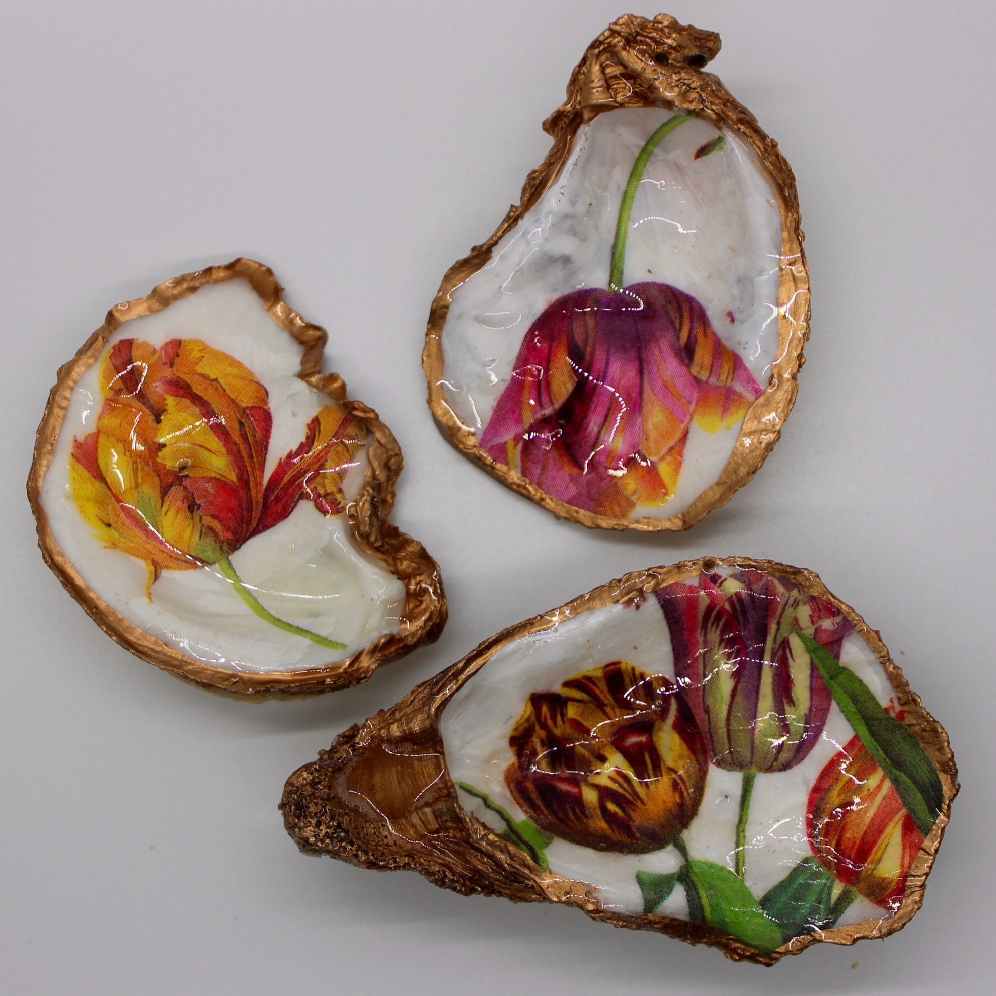 Precious oyster shells that have been re-purposed into beautiful handmade creations. Each shell is a true work of art and no two oysters are identical. Beautiful on their own as a paperweight or even as a ring holder...Read more